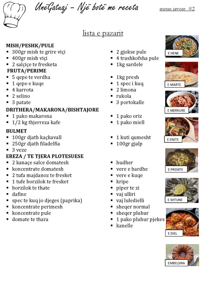 Menuja javore do te postohet çdo te premte ne faqen unegatuaj.com!